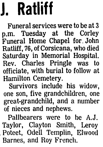 Surviving are two daughters, Mrs. Russell Baxter, Kerens, and Miss
