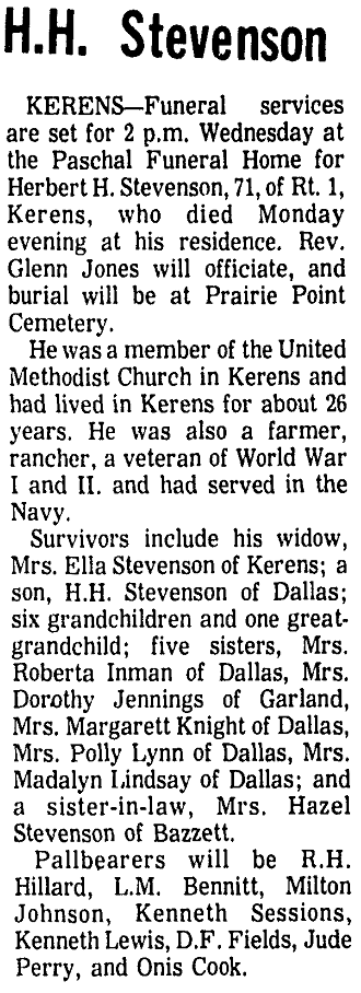 at 2 p.m. from the Kerens Church of Christ.
