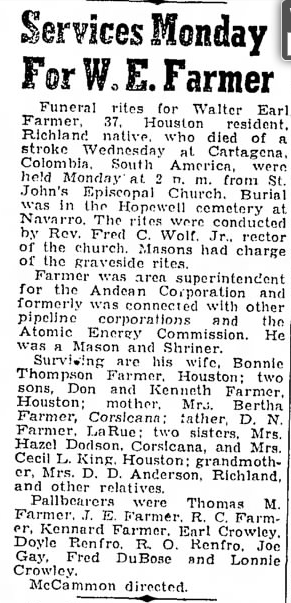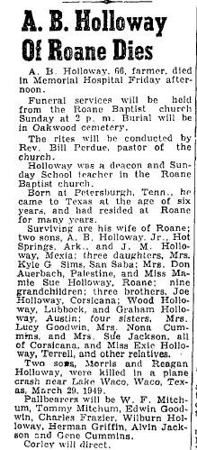 private family burial will follow in Hillsboro, Texas.