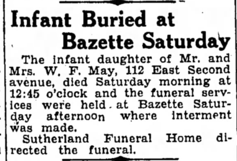 Graveside services are scheduled for 3:00 P.M. Sunday, July 13,