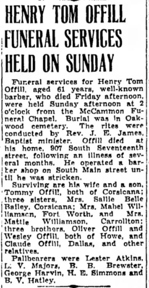 Arrangements by Griffin-Roughton Funeral Home, Corsicana.