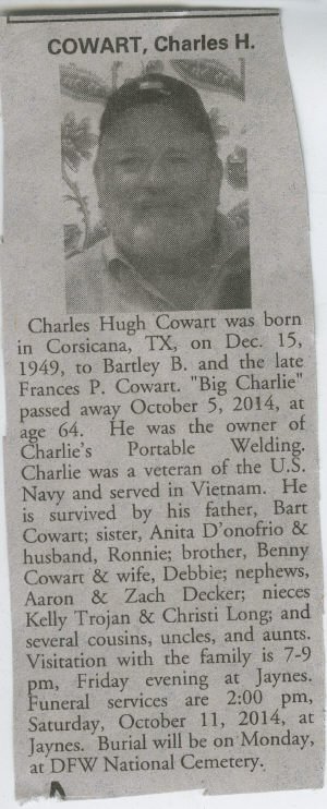 Corey Dudley. He also leaves his 13 beloved grandchildren. |
