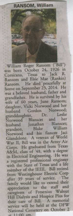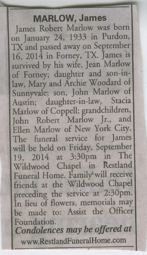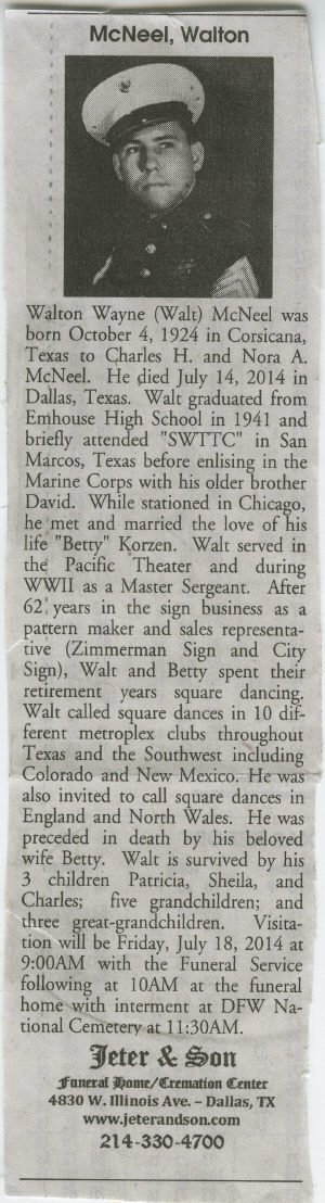 passed away on Monday, Sept. 22, 2014 at Walnut Place in Dallas. She