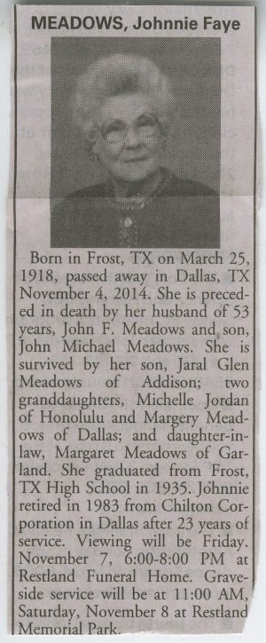 Johnnie Fay McNeel, 91, passed away Sunday, Jan. 30, 2011.