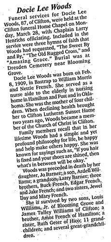 Arrangements by Griffin-Roughton Funeral Home, Corsicana.