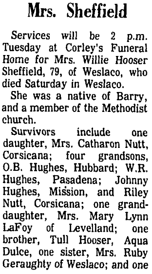 Corsicana. Arrangements by Scott Funeral Home, Corsicana.