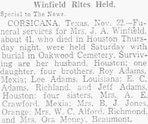 Corsicana had died in Wichita Falls and that the