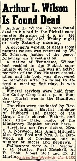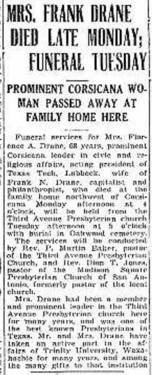 BURIAL OF FORMER CORSICANA RESIDENT HERE LATE SATURDAY