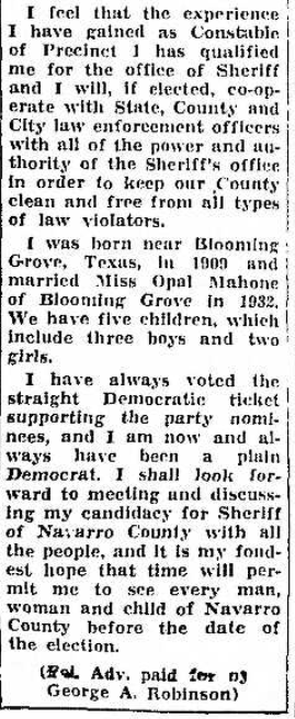 Native of Hamburg, Tenn., he came to Navarro county, as a