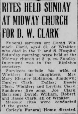 Pallbearers were J. C. Stover, Otis Atkeisson, L. C. Clark, Kenneth Wyatt, George Robinson and A. H. Webb.