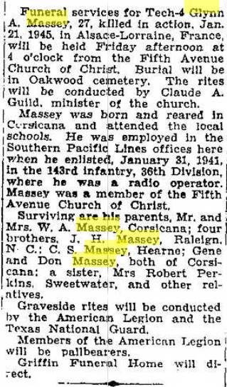 Corsicana; five daughters, Mrs. Audie Vill, Houston; Mrs. Alice