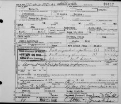 Navarro County-burial unknown) 2nd husband Patrick William O'Conner married Jul 23, 1941; d/o John Glenn