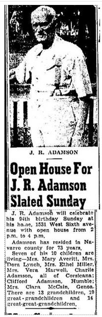 Native of Tennessee, Adamson came to Navarro county 75 years ago and