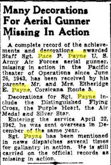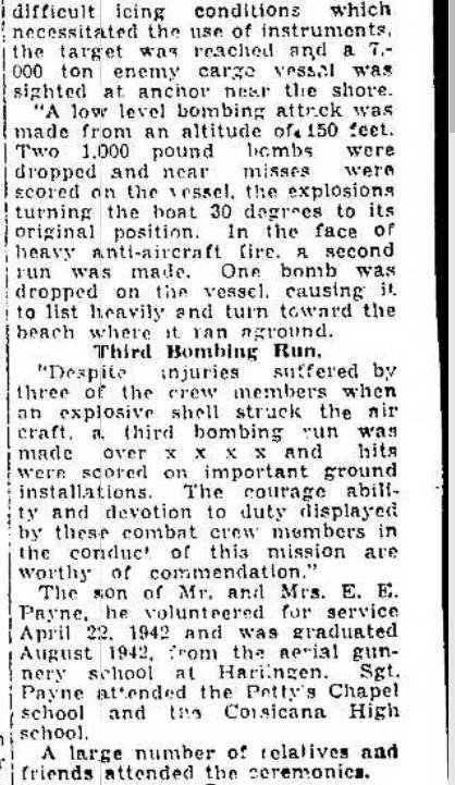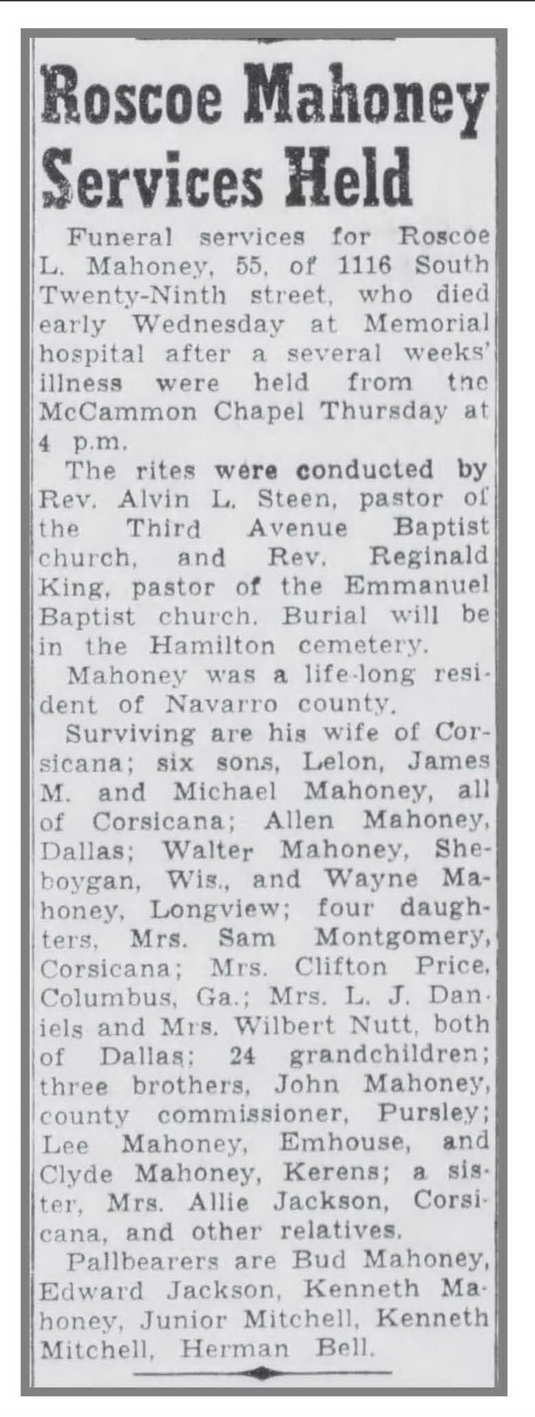 Kerens, Texas. Married Carol Spratling on May 27, 1947 in