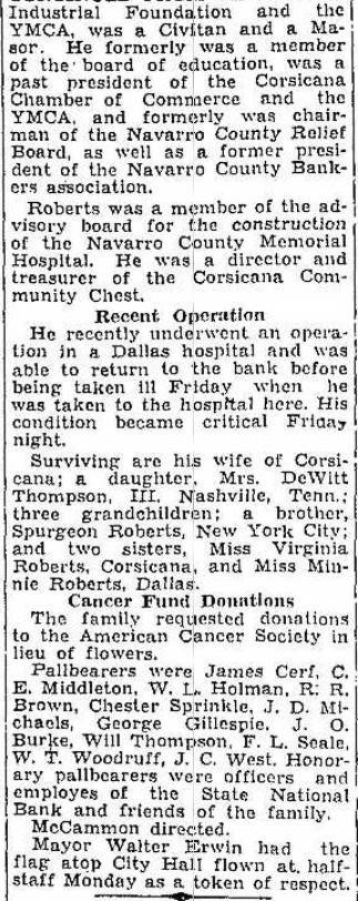 Surviving are his wife of Corsicana; two sons, E. Truman Fletcher,