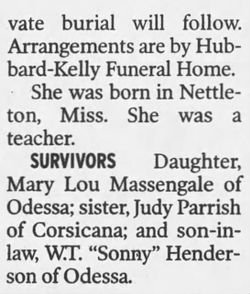 Plains, and Robert Nokes of Deanvill, TX.; sister and