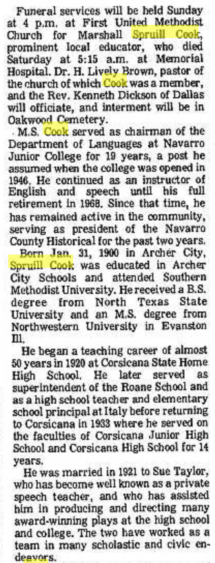 She was a native of Faltonia, resident of Waco 15 years, a retired school teacher and a member of the Daughters of the Nile.