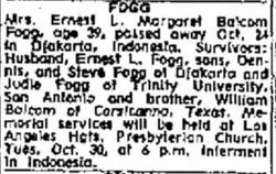 Mr. and Mrs. Cates, Mrs. Curtis and Mrs. Rowan were riding in a white 1959 Buick and the Van DeGaer family was in a 1955 red and