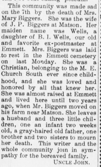 Elm Flat Community cemetery. The rites were conducted by Rev. Paul Curry,