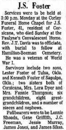 The Rev. J. W. Fore officiated and burial was in the