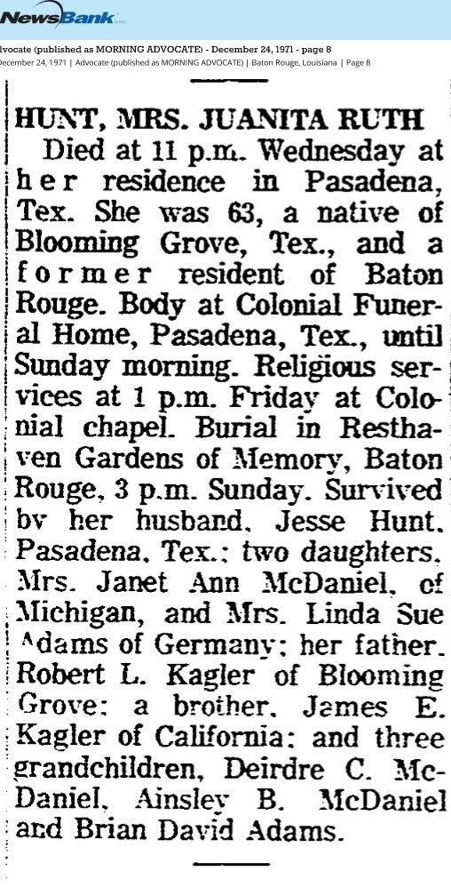 California; two brothers, Roscoe Hubbard, Dallas, and Oscar