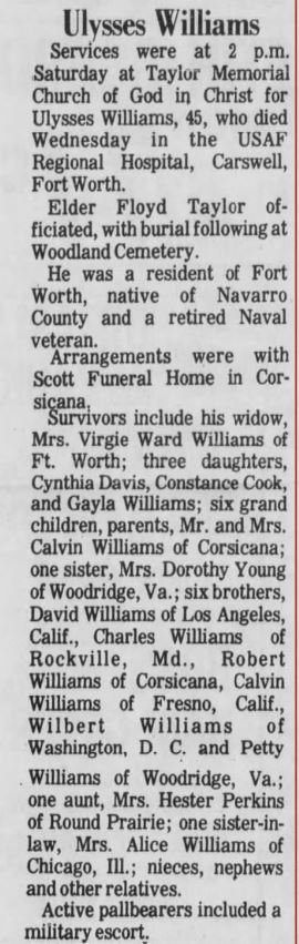 (Willie V.), one daughter: Bernice Littleton, three brothers: Isaac