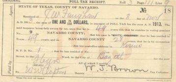 1913 Poll Tax Receipt J. W. Faughaw, Kerens, TX