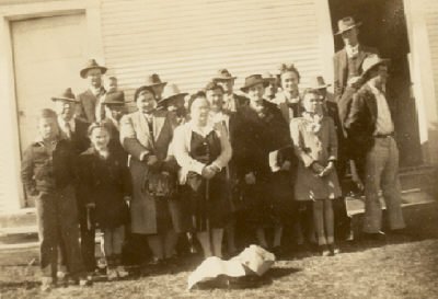 prior to 1951 . Woman in front wearing black with a hat is Minnie