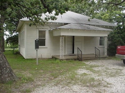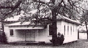 Corsicana, Texas. The present building, one with a low ceiling, is a white frame church with a low overhanging front porch. The members of the church