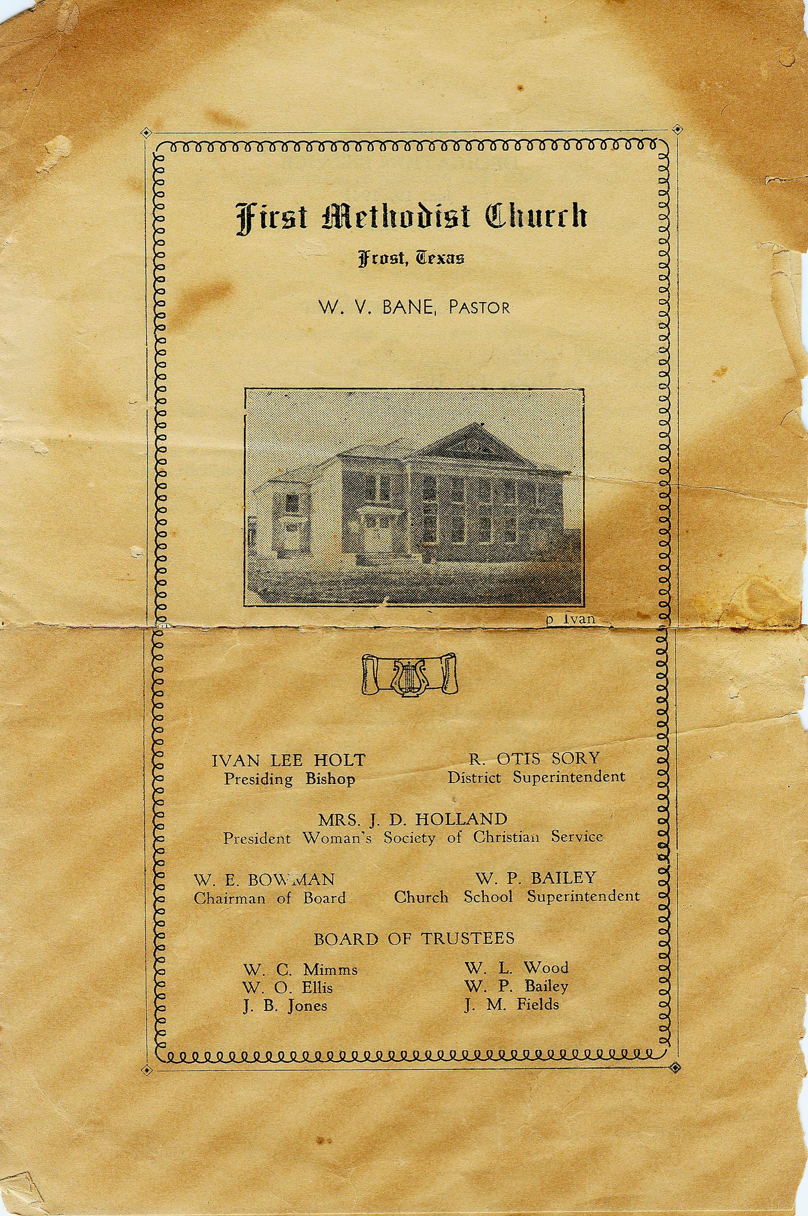Taken 4-21-35 Present church building W.W. Pittman, pastor Frost Methodist Church Donated by