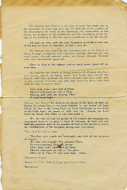 On Jan 19, 1941, with the church free of debt, a dedication service