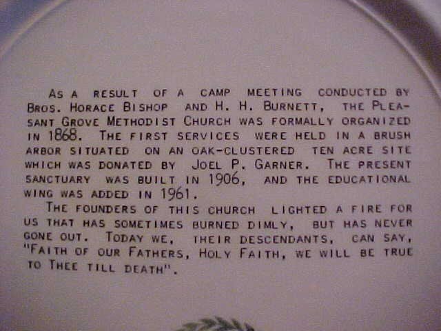 H. H. Burnett, the Pleasant Grove Methodist church was