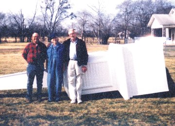 Jimma Traweek, center, collected and saved money to pay for a new steeple at Richland Baptist Church. At left is deacon Charlie Rash and at right is RBC pastor Bill Honea. Courtesy Photo |