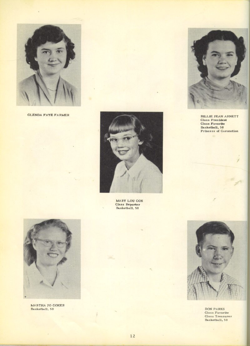 Sparkman 8. Betty Luther 9. Martha Jo Coker 10.