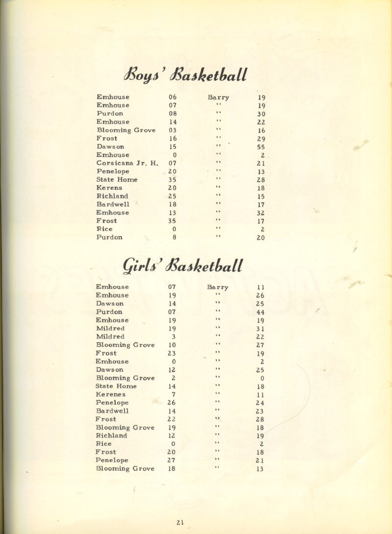 Grimmett, Coach J. L. Cox 13. Joan Sparkman, Margaret
