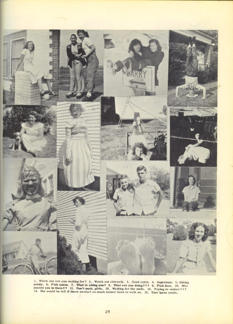 Lou Bell 14. Vida Brooks, Mary Barr, Betty Luther 15.