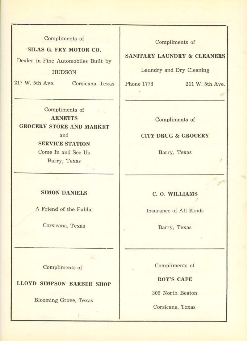Ware, J. L. Cox, La Voyce Richardson, Mr. Cooper, Joan Sparkman,