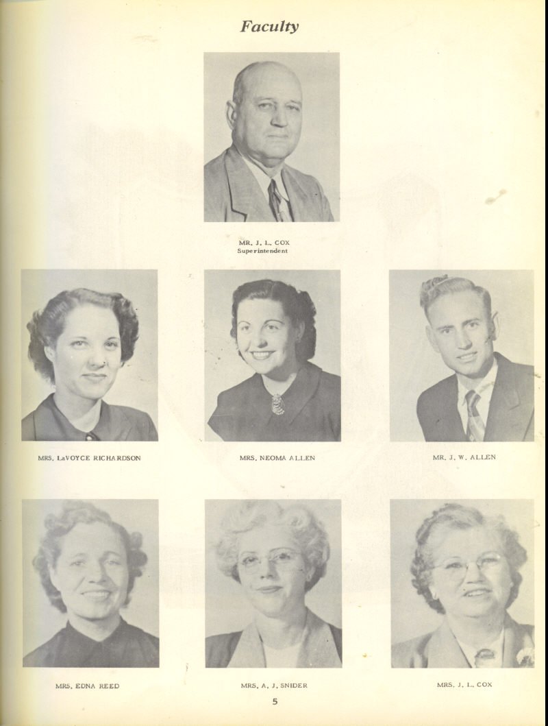 J. L. Cox, Mrs. La Voyce Richardson, Mrs. Neoma Allen, Mr.