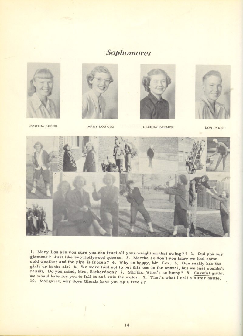 “Gal” Barr 11. ? 12. Marie Coker, Clyde Grimmett,