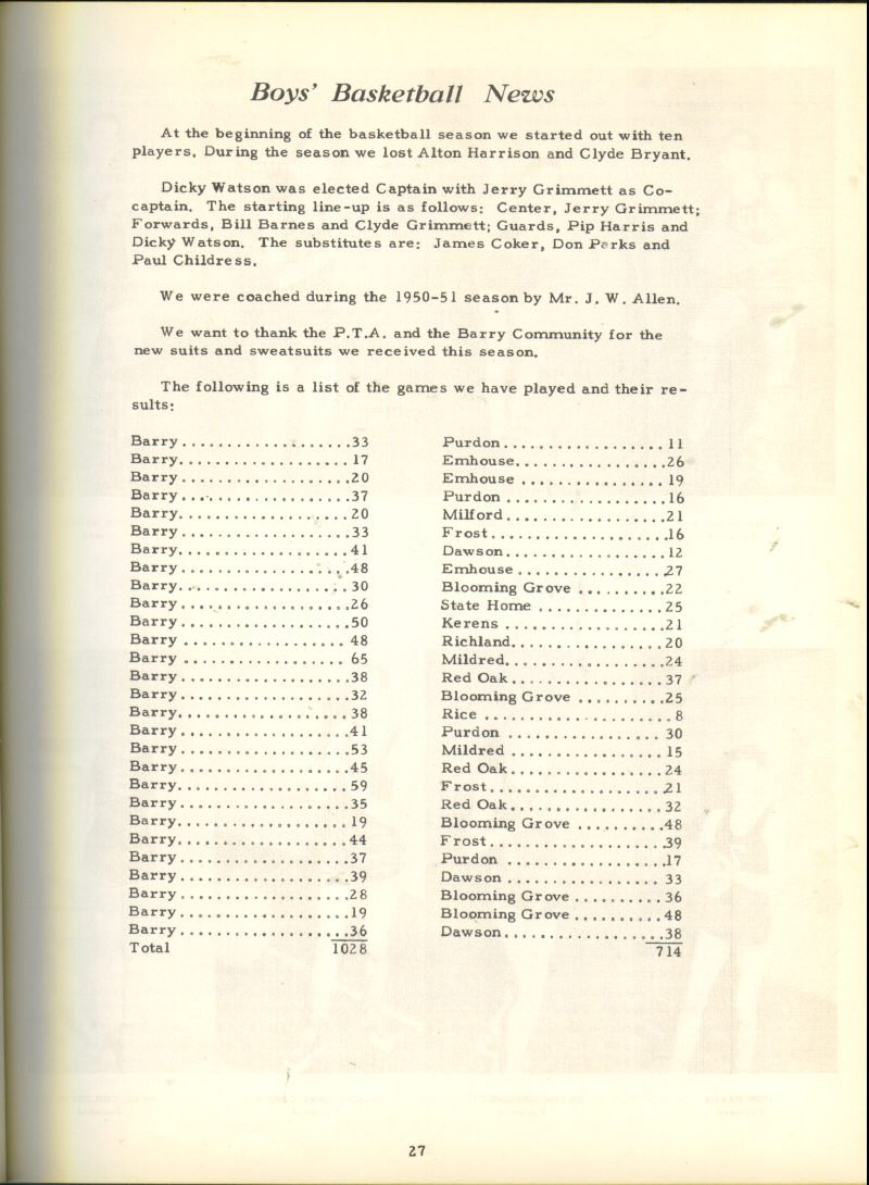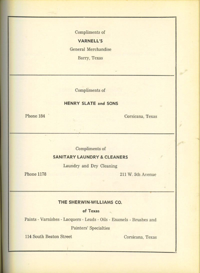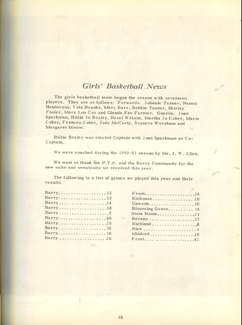 Worsham, Bobbie Tanner 12. Vida Brooks, 13. Clyde