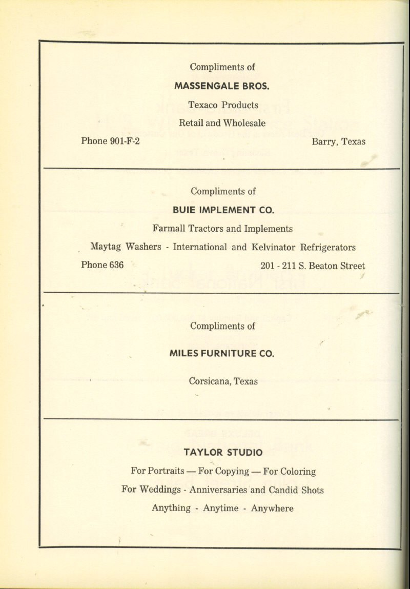 Bros., Buie Implement Co., Miles Furniture, Taylor Studio