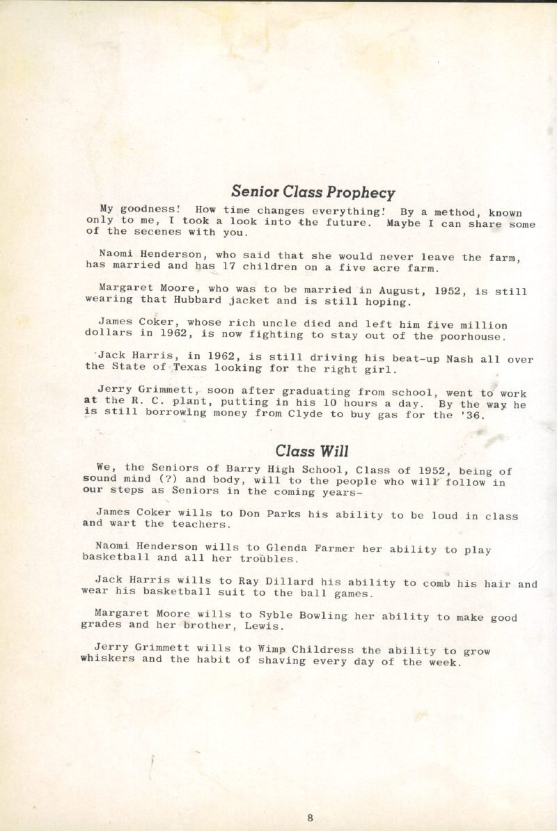 Seniors of Barry High School, Class of 1952, being of sound mind