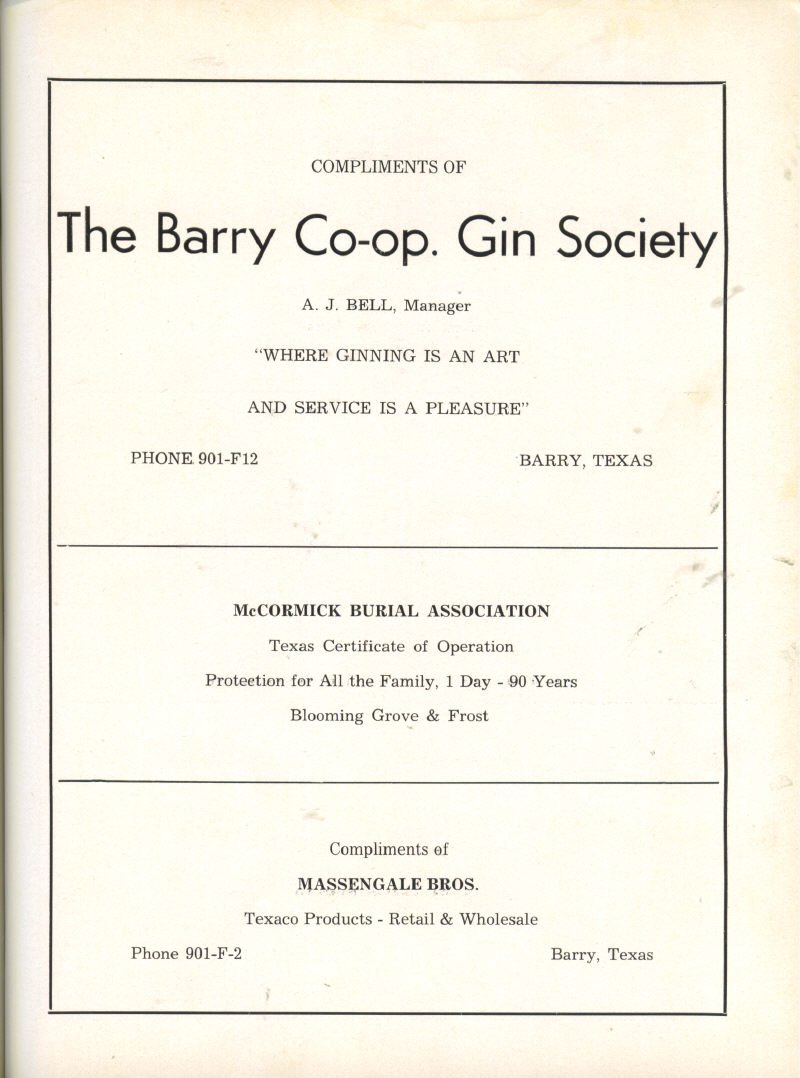 Merchandise, Barry, Tx., Williams & Griffis Gins, Frost, Tx