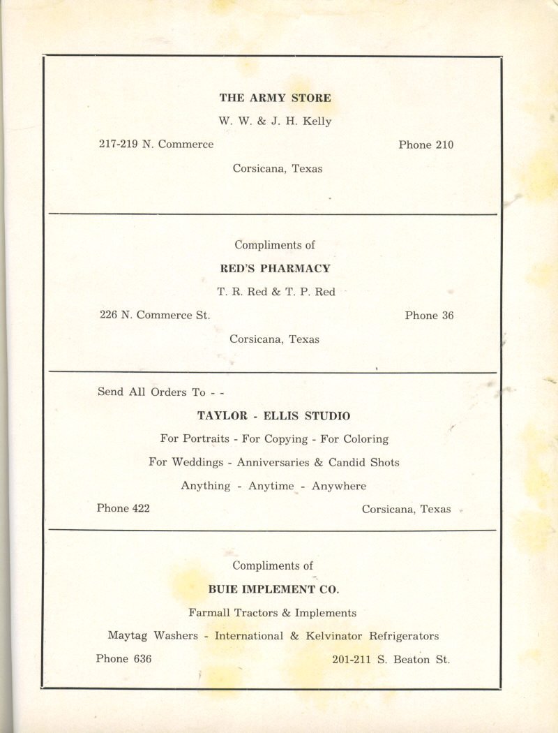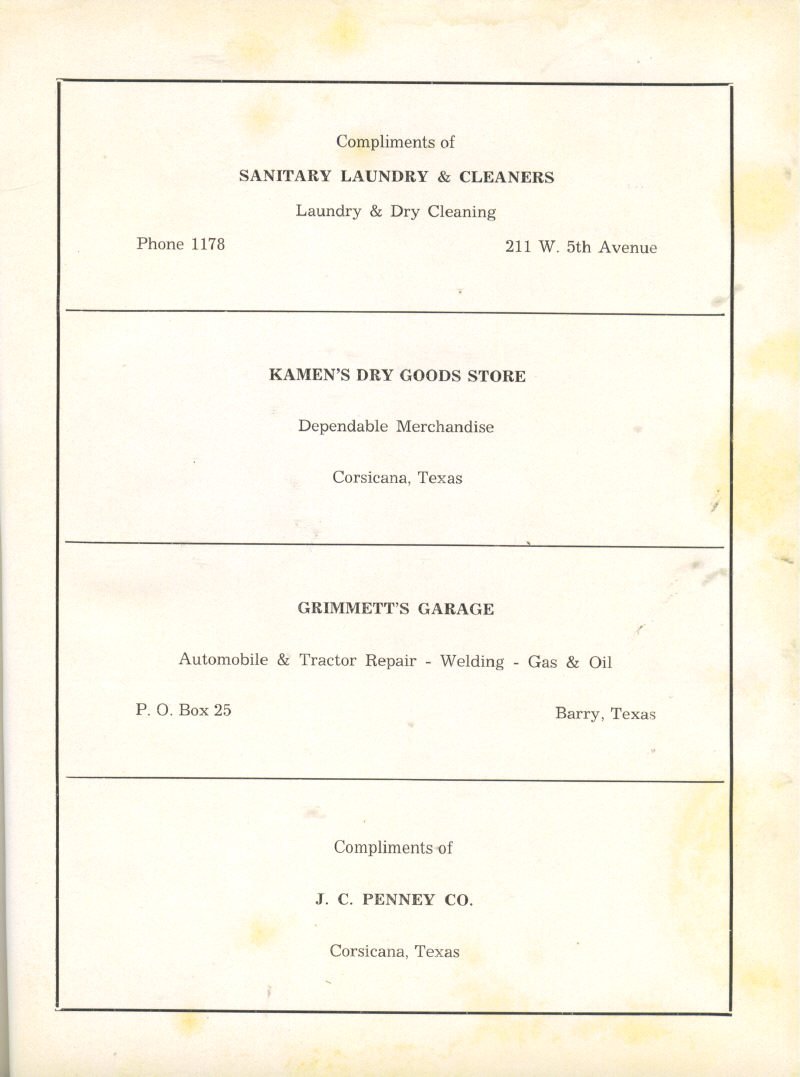 Cleaners, Kamen’s Dry Goods Store, Grimmett’s Garage, J.