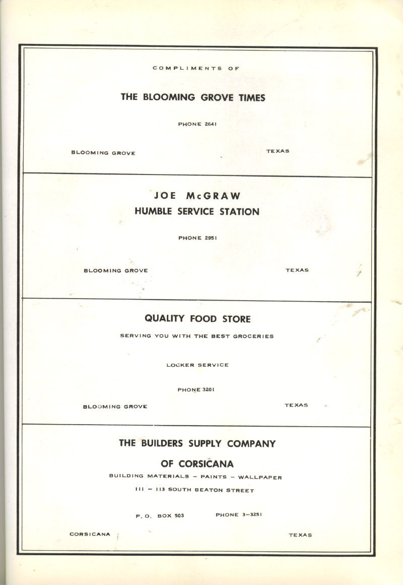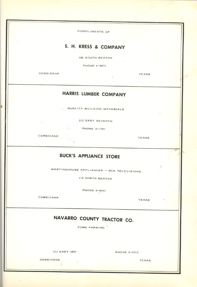 Company, Harris Lumber Company, Buck’s Appliance Store,