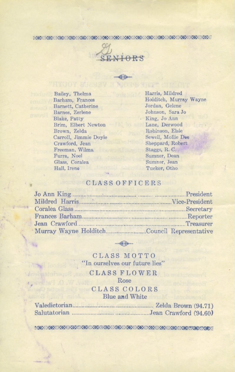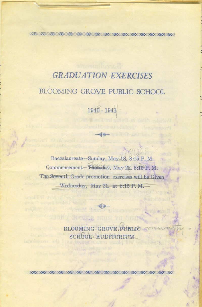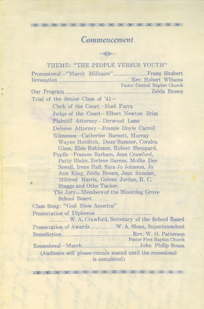 1941 Blooming Grove Graduation Exercises Program Blooming Grove, Navarro County, Texas
