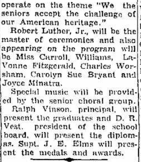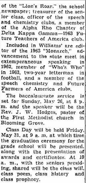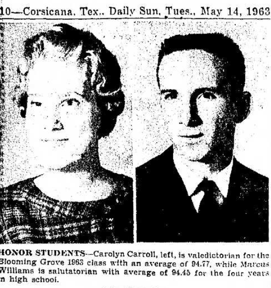 1963 ValedictorianBlooming Grove High SchoolBlooming Grove, Navarro County, Texas