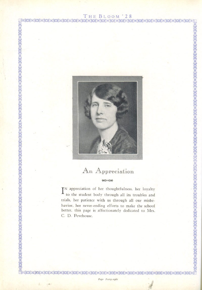 An Appreciation – Dedication – Mrs. C. D. Pevehouse