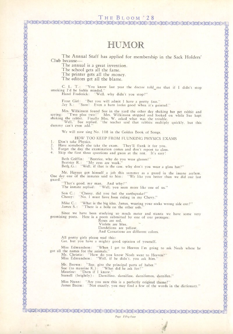 The Bloom '28 –Editor Patty Mae Harris, Business Manager