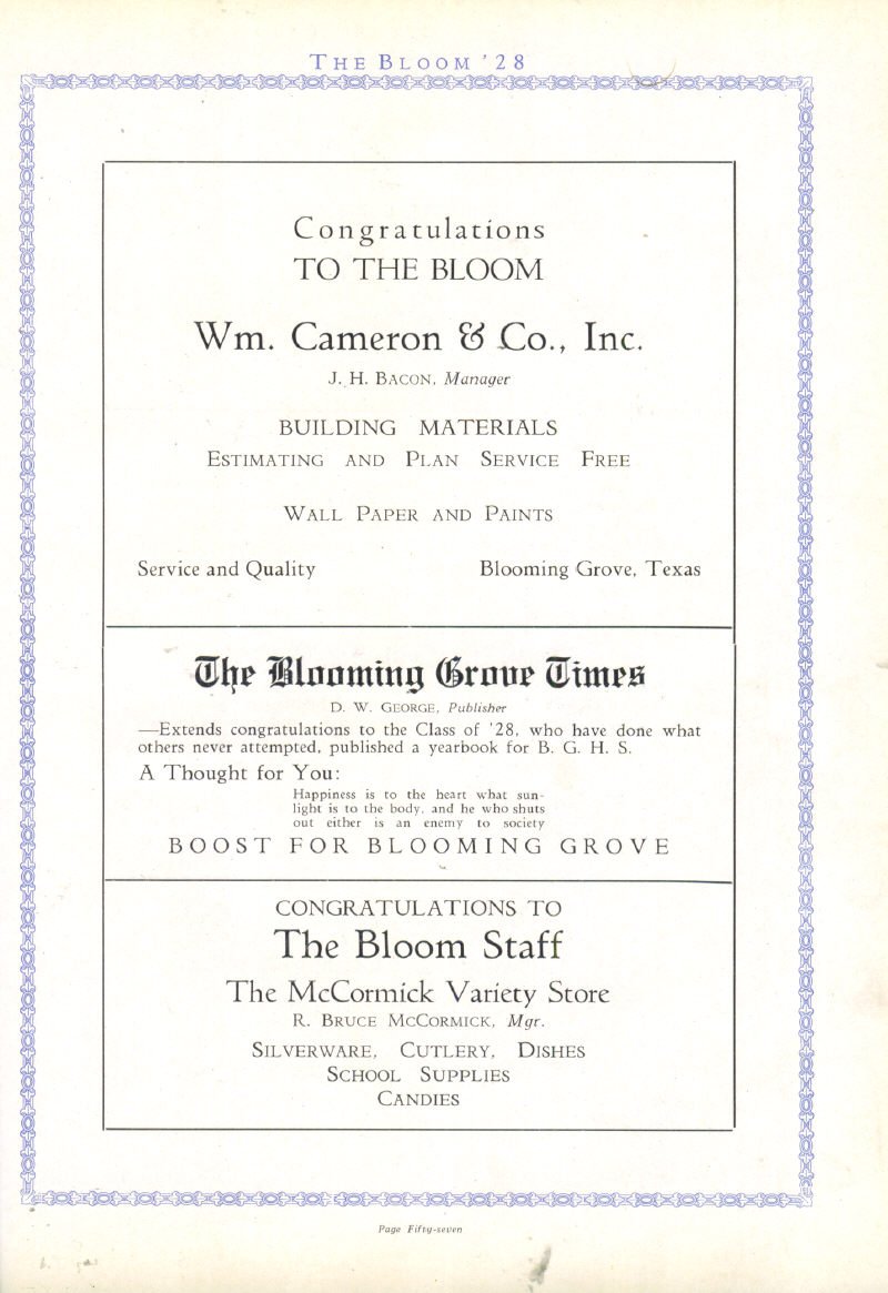 Ads—William Cameron & Co., Inc. ---The Blooming Grove Times